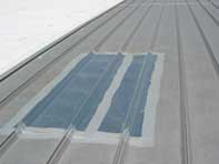 Грунтование поверхности, нанесение ремонтного полиуретанового состава с армированием в местах примыканий, фальцев, печных труб и прочих узлов, нарушающих целлостность металлического покрытия. На осталюную площадь допускается нанесение полиуретановой мастики без армирования.