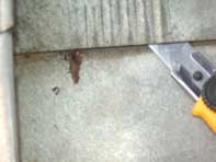 Грунтование и нанесение с перенахлестом ширины реза ремонтного полиуретанового состава с армированием.